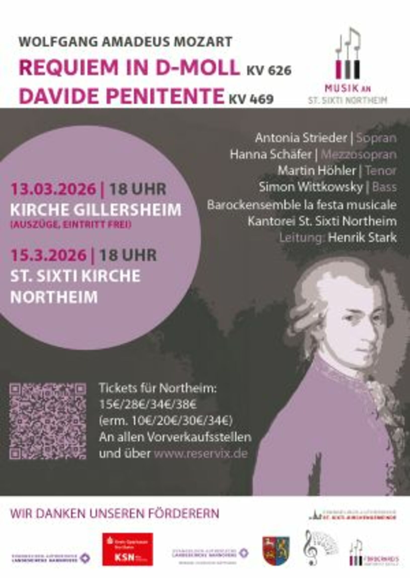 Im 270. Geburtsjahr von Wolfgang Amadeus Mozart führt die Kantorei St. Sixti zusammen mit la festa musicale und Solist*innen zwei große Werke des weltberühmten Komponisten auf: